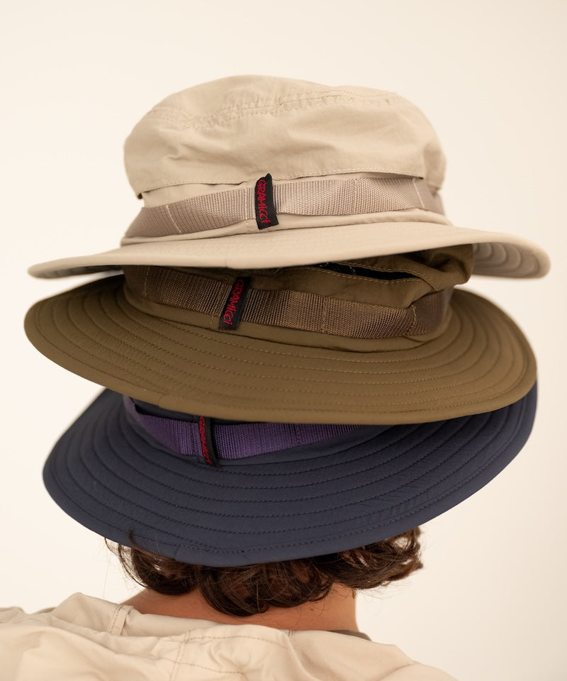 The Nylon Bucket is a breathable bucket hat that is great for outdoor wear or urban wear, depending on how you style it. This water-repellent bucket hat is made with durable nylon, which gives it a dry-touch feeling. Because of its water-repellent material, this bucket hat is great for use near water. The daisy chain details on the webbing belt give this bucket hat a unique look, and it's available in multiple color options.