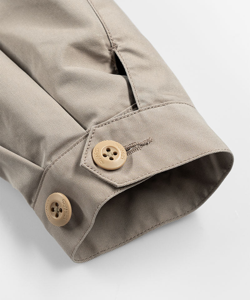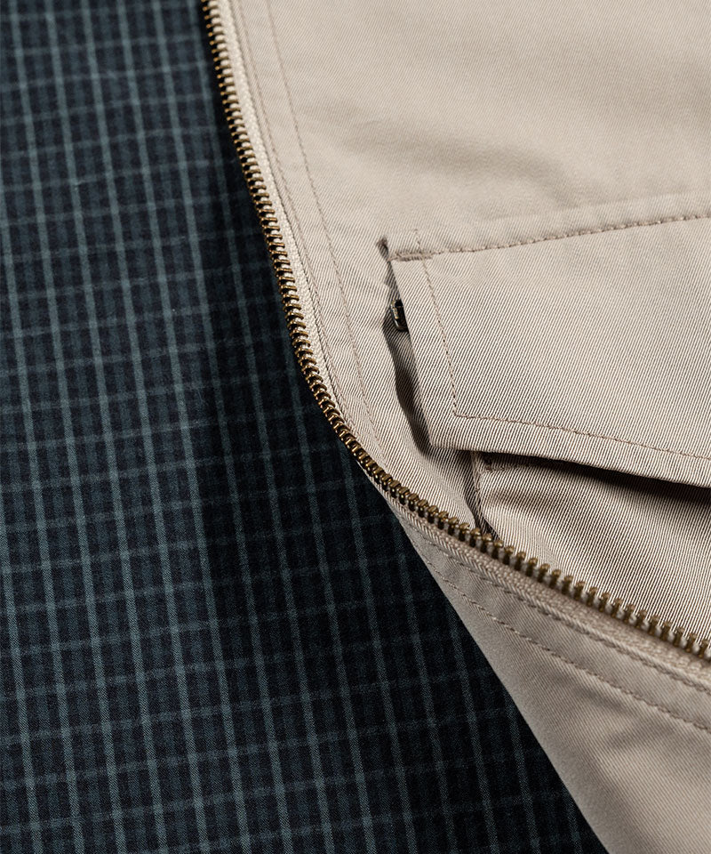 Inspired by British military outdoor garments, the Ventone Jacket offers an oversized fit with slightly dropped shoulders, making it the ideal piece for casual, comfortable outerwear. It features large utility pockets with expandable cargo areas, plus hidden side-entry hand-warmer pockets, combining style and functionality. The exterior is crafted from a Japanese-milled, long-staple cotton fabric that, thanks to its compact weave, offers water repellency similar to the renowned Ventile fabric. The olive colorway has a "sharkskin" finish, giving it a subtly iridescent sheen. Also available in a versatile Beige.