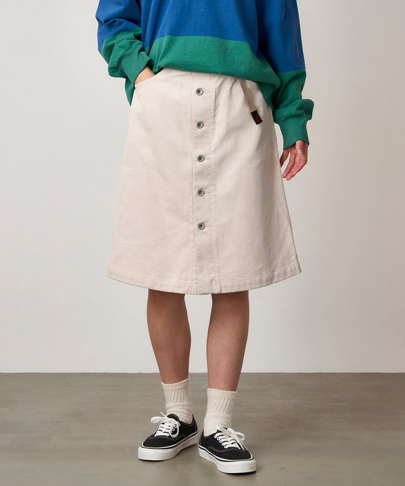 The Gramicci Women's Buttoned Down Midi Skirt is proof that corduroy isn't just for autumn anymore, though let's be honest, it was always too good to be seasonal anyway. This 100% cotton 10w corduroy brings that perfect weight that's not too heavy, not too light, but just right for year-round wear, like the Goldilocks of corduroy fabrics that somehow manages to be both sophisticated and completely unpretentious about its superiority. The mid-length hits that sweet spot between practical and stylish, and those front pockets combined with rear welt pockets provide functional storage for everything from your phone to your emergency snack stash to your growing collection of facts about why corduroy is actually superior to most other fabrics. Because while other fabrics are busy having seasonal limitations, corduroy is out here being the reliable, comfortable, and completely timeless choice that works whether you're planning adventures or just looking effortlessly put-together.