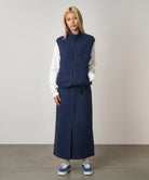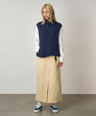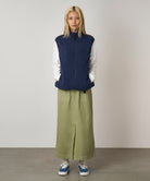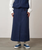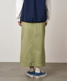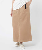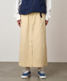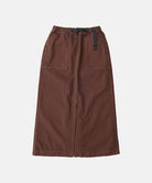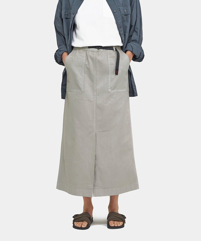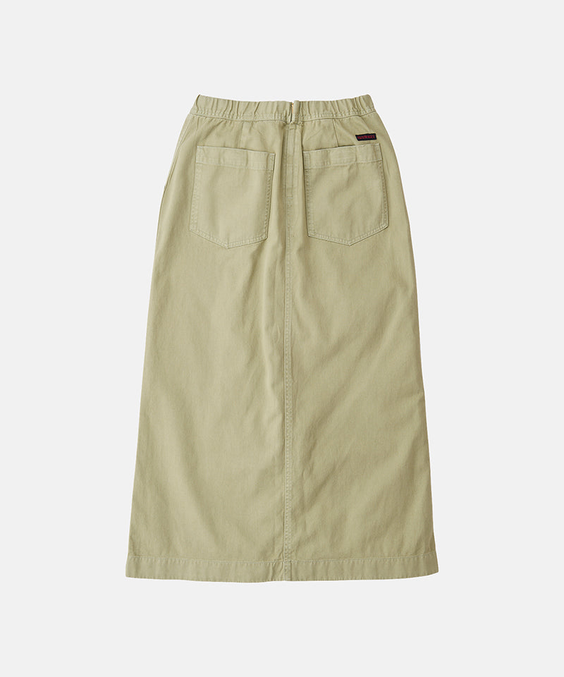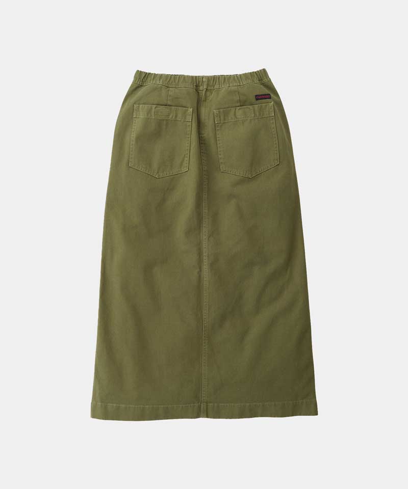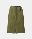 Gramicci's Long Baker Skirt is a simple ankle-length skirt with a long slit running down the front in the middle. The waist is rubber, but features the look of the Gramicci webbing belt. This organic cotton skirt is tastefully dyed and is highly durable, elastic, and resistant to damage caused by strenuous movements. This classic and comfortable skirt is available in multiple colors, including olive, navy and black.