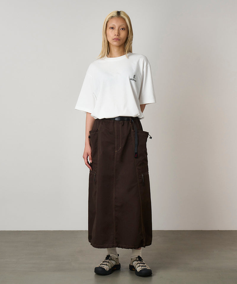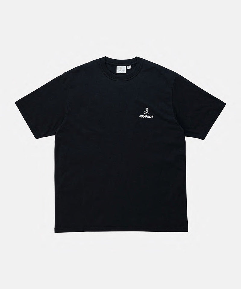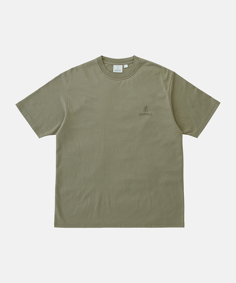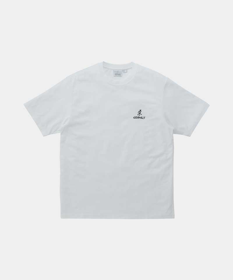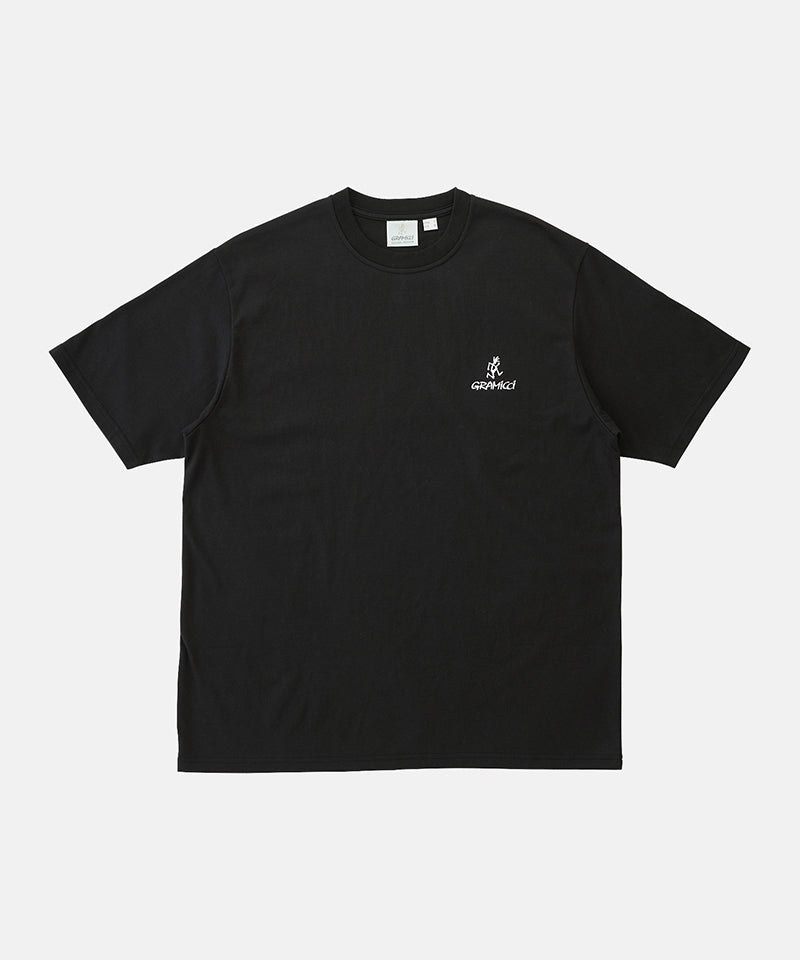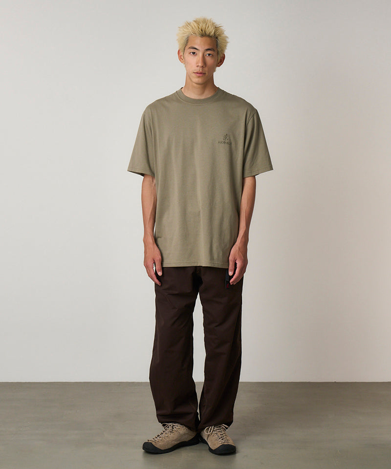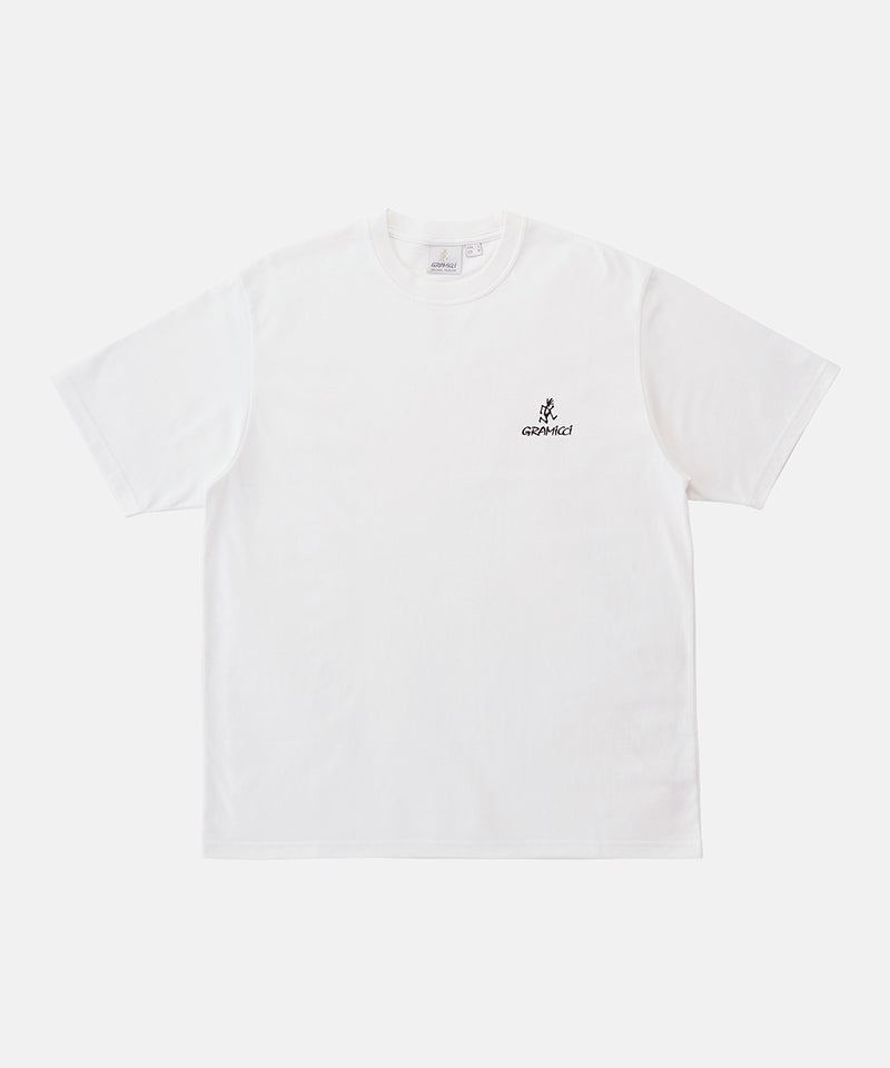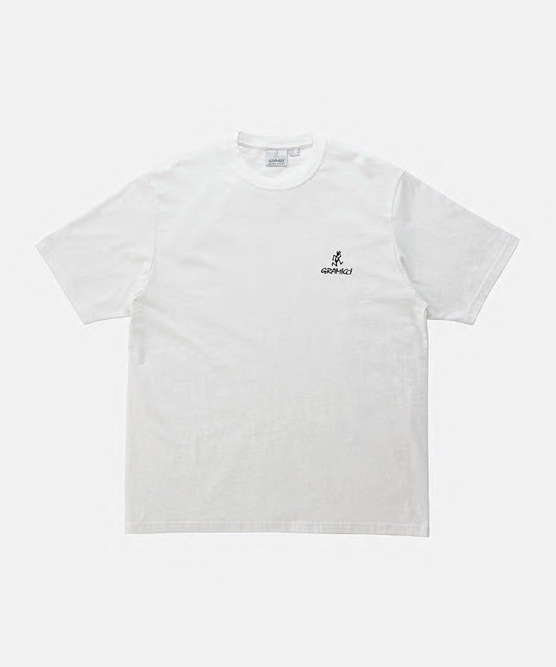 The One Point Logo Tee is a simple t-shirt made with the classic Gramicci fit and quality. This short-sleeved tee is made with BCI cotton and recycled polyester but still retains that comfortable cotton feeling. This outdoor tee has a dry touch and dries quickly, making it a great addition to your outdoor wear. The Gramicci and Running Man logos are on the left chest of this shirt, which makes it a classic tee that is great for layering.