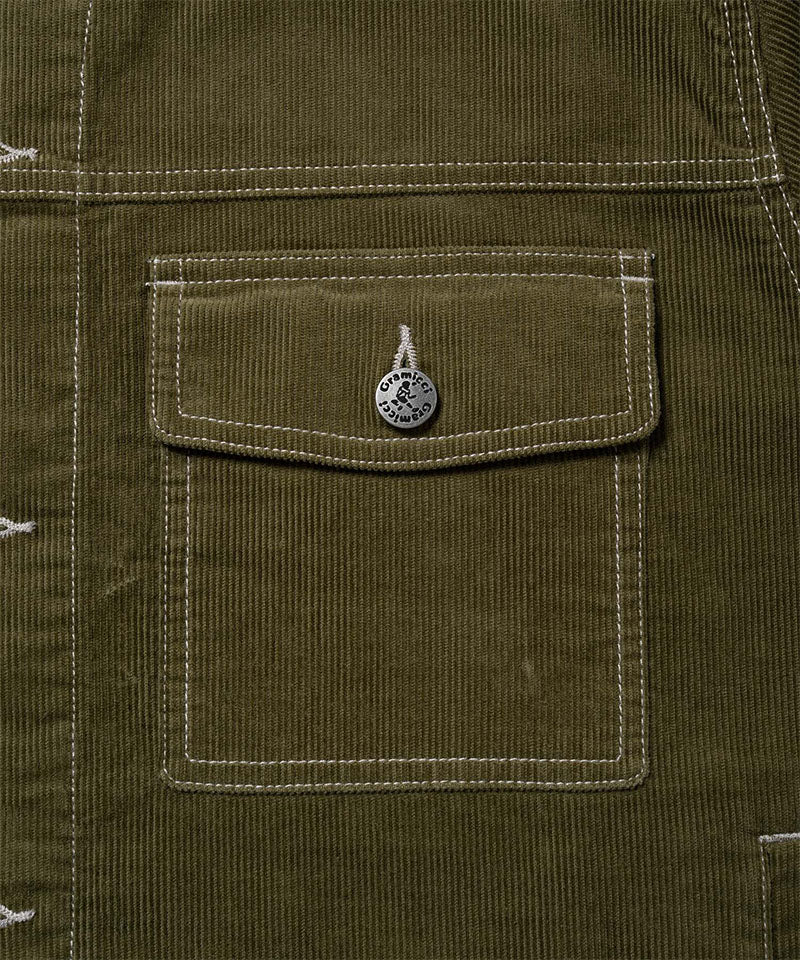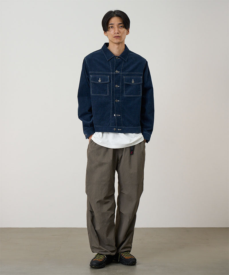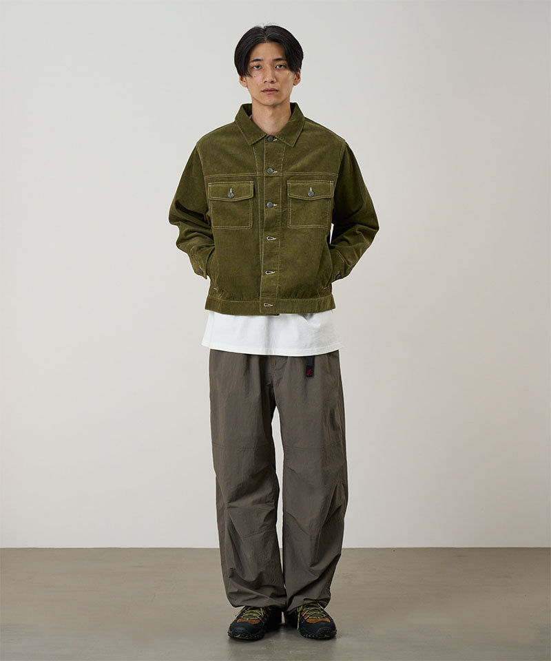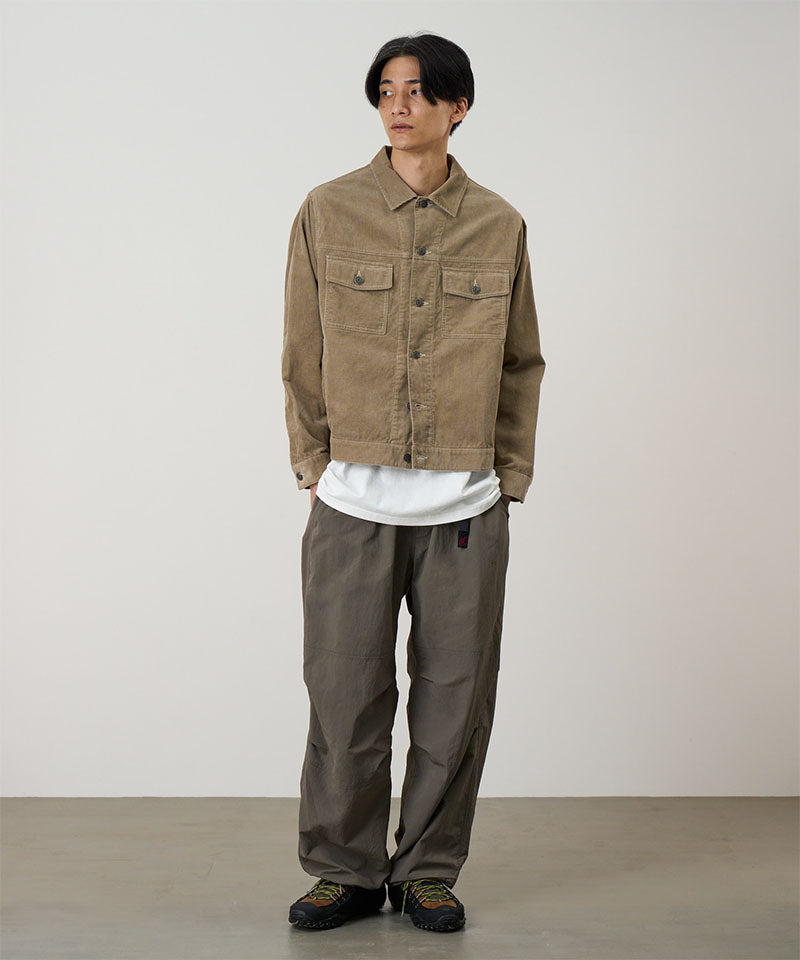 Enjoy a vintage look with Gramicci's Corduroy Trucker Jacket for men. With the contrast stitching, Gramicci logo buttons, and straight fit, this corduroy jacket stands out in a sea of outerwear. Available in beige, navy, and olive, choose which vintage vibe fits your style the best. This trucker jacket is a great layering piece that adds texture to any look.