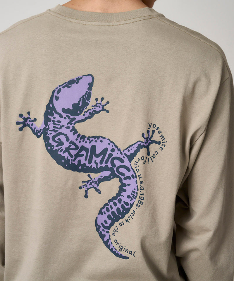 The Gramicci Gecko Long Sleeve Tee celebrates nature's original grip strength champions, geckos, who've been casually defying physics and making impossible wall moves look effortless since way before humans invented chalk bags and started overthinking footwork. This 100% eco cotton piece brings that dry touch fabric excellence with long sleeves that provide perfect coverage for those extended climbing sessions where you're desperately trying to channel even a fraction of your gecko role model's supernatural sticking abilities.