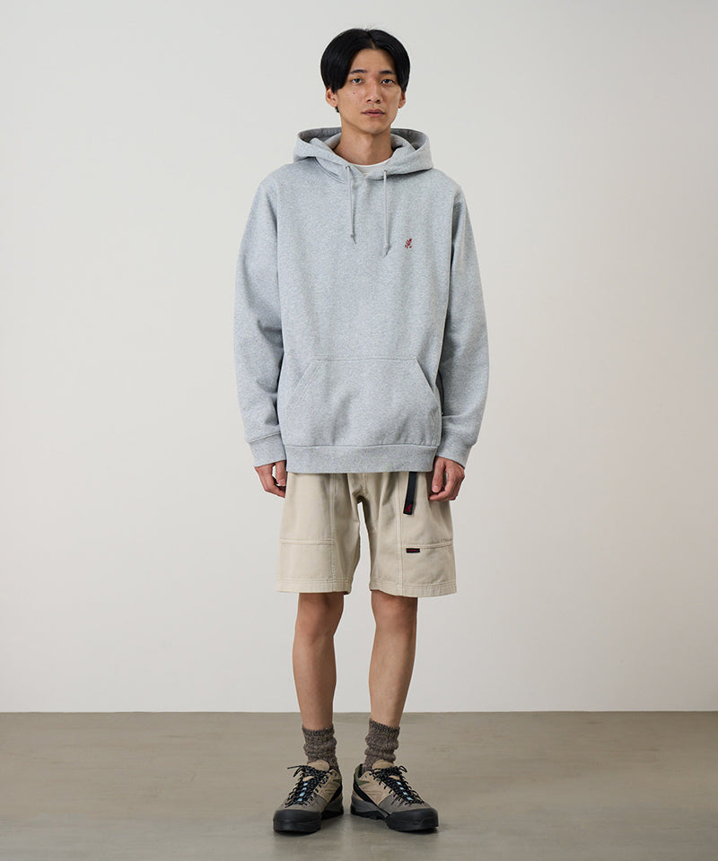 The Gramicci One Point Hooded Sweatshirt is the hoodie equivalent of a multi-tool: simple, reliable, and ready for whatever the day throws at you. This fleeceback cotton classic knows that sometimes you need to disappear into your hood for a moment of focus, and sometimes you need that kangaroo pocket to stash your chalk bag, phone, or whatever small treasures you've collected along the trail. The embroidered Running Man logo sits quietly on the chest, a subtle nod to the brand that's been getting people outside since before "adventure gear" was a marketing category.