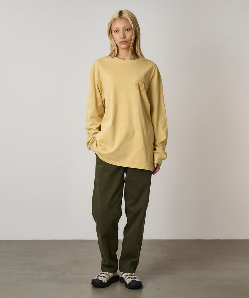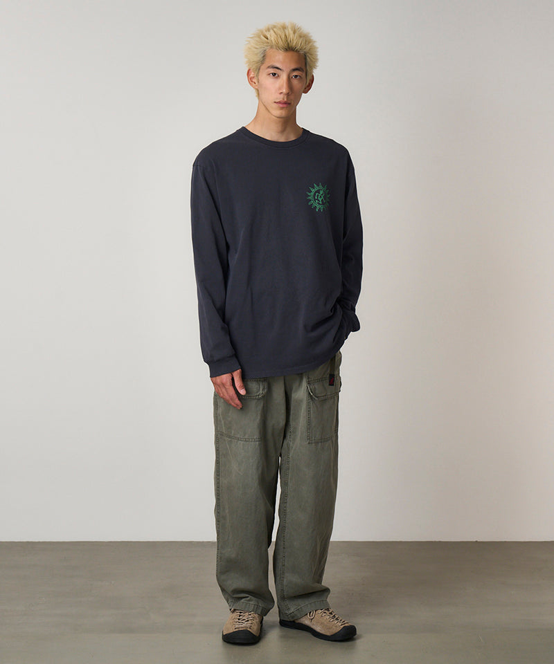 The Gramicci Sun Long Sleeve Tee is for those who understand that worshipping our favorite star requires a delicate balance between devotion and self-preservation, like wanting to spend all day basking in solar glory but also not wanting to look like a lobster who made poor life choices. This 100% eco cotton piece brings that dry touch fabric excellence with long sleeves that provide the perfect amount of coverage for those extended sun-chasing sessions where you're torn between getting that perfect golden hour glow and maintaining enough skin integrity to climb another day. The small chest print keeps things subtly solar from the front, while the large back graphic makes it clear to everyone behind you that yes, you do plan your entire life around weather apps and yes, you probably know the exact time of sunrise for the next three months.