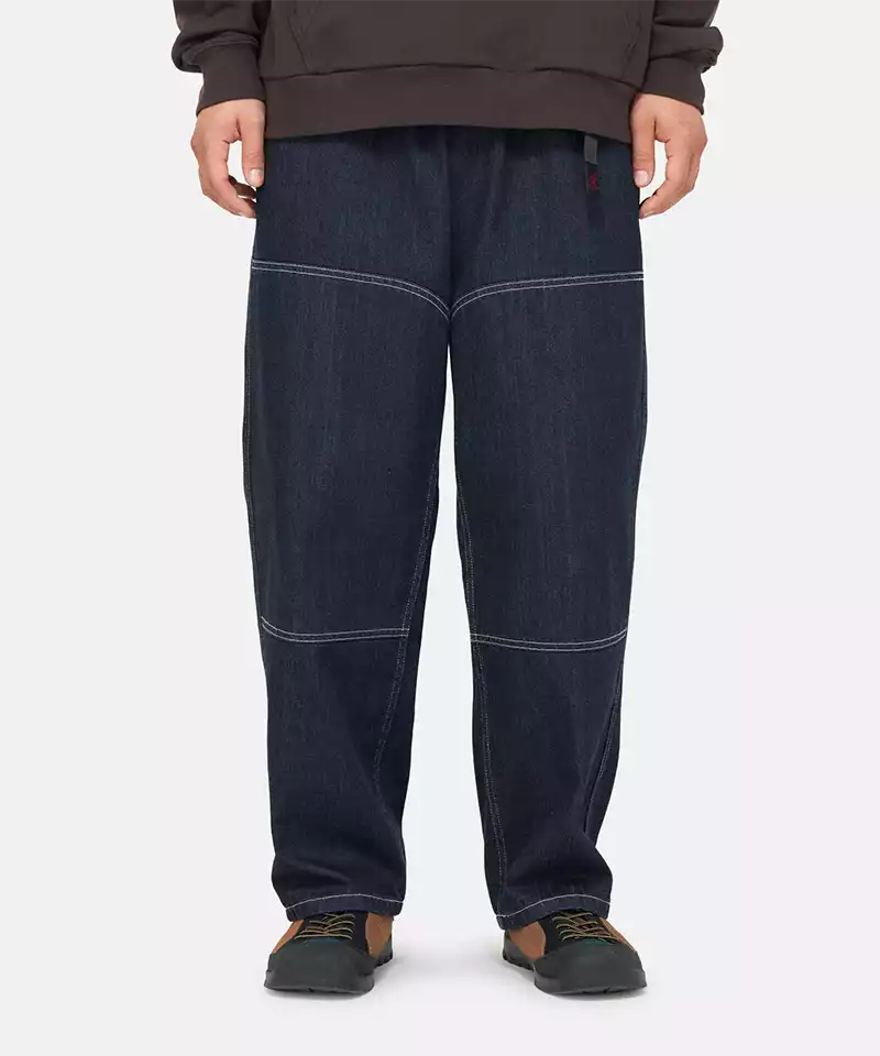 The Meadows Double Knee Pants are a seriously hardy pair of work or hiking pants made from particularly special Japanese denim. Made in the legendary Kaihara mill, this thick 12.5oz denim has been woven with Cordura nylon to make it even tougher, with excellent resistance to ripping and abrasion. The elastic waistband features an integrated nylon belt that can be adjusted with one hand, while the relaxed fit and gusseted crotch allow maximum comfort and mobility. And if you need another reason to love these pants, they have reinforced knee panels to prevent them from wearing through. These finely crafted work pants are functional as well as stylish, making a coveted addition to both your outdoor and urban apparel collection.