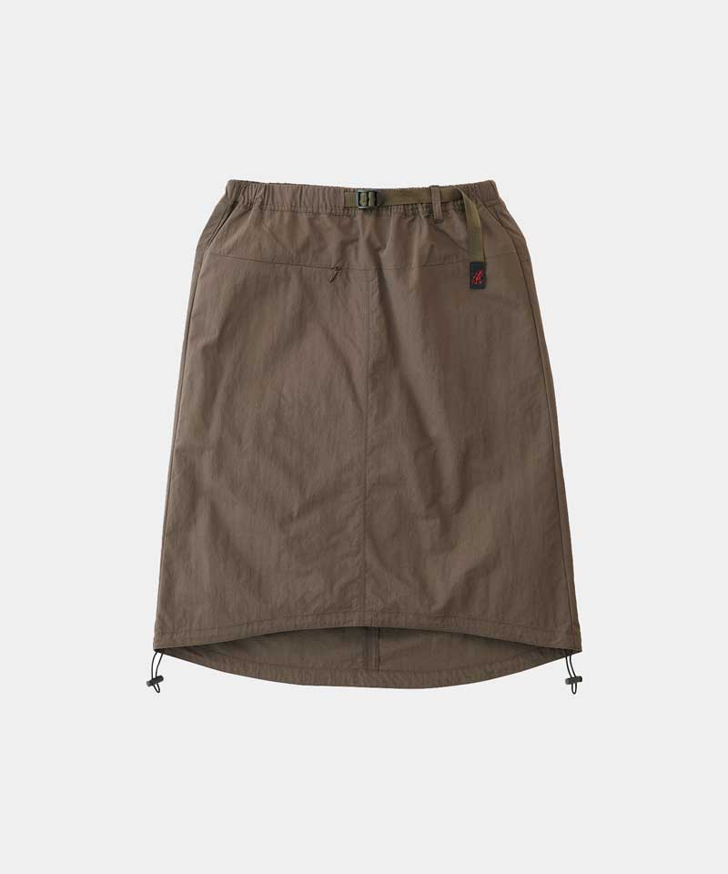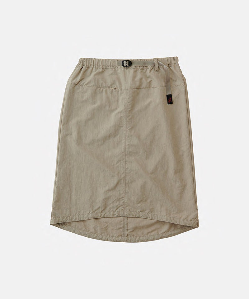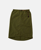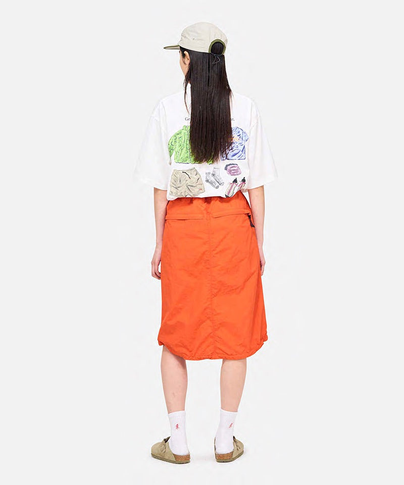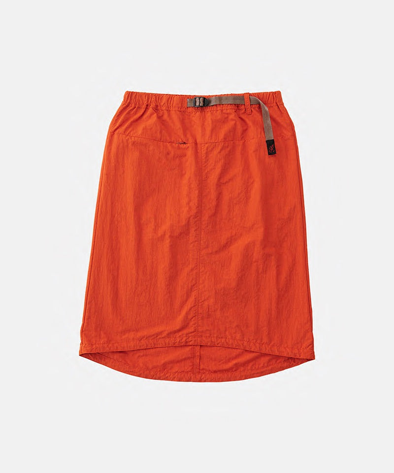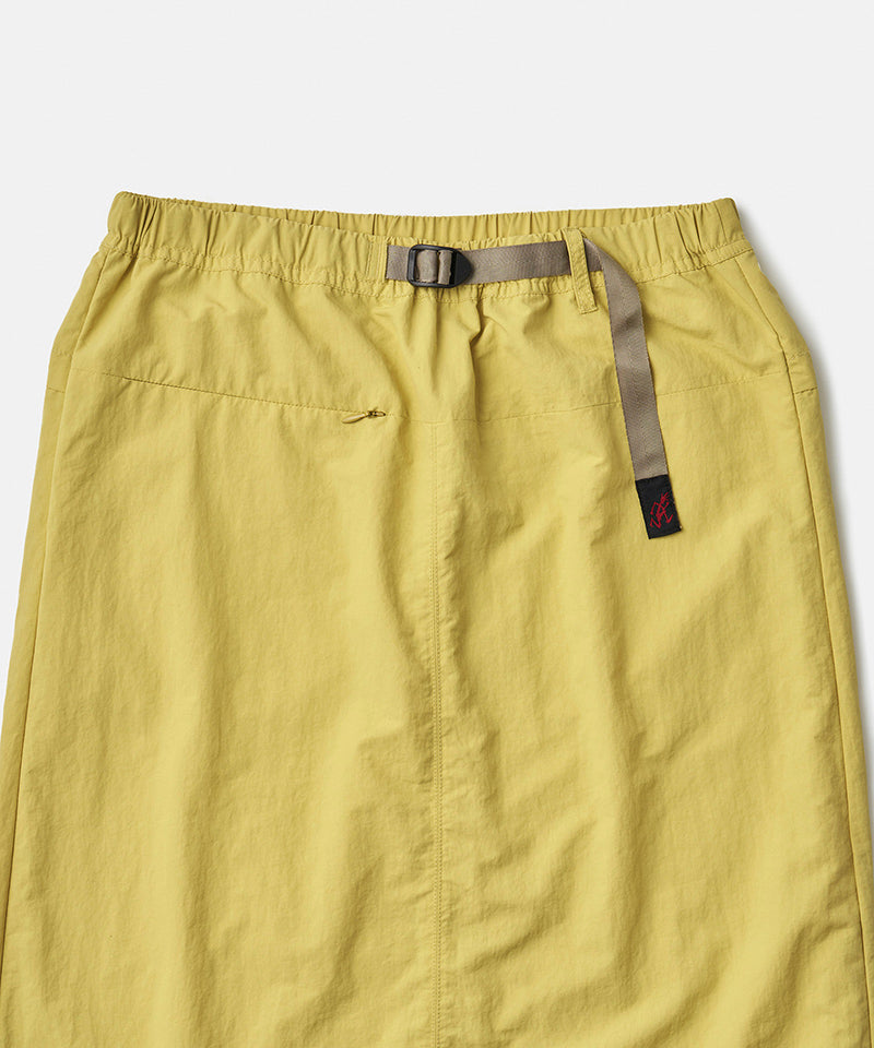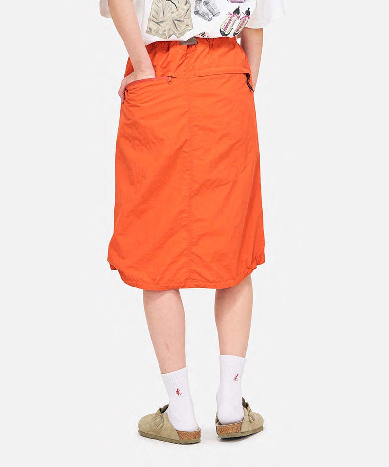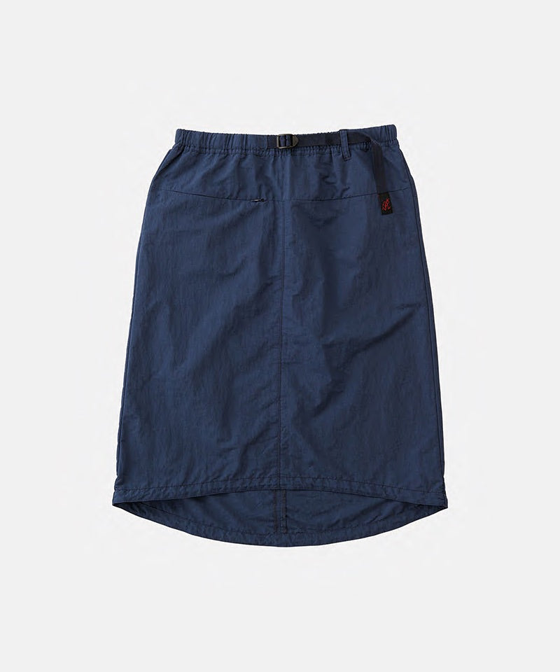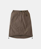 The Nylon Packable Midi Skirt is an A-line skirt that features a shorter front and longer tail-cut back. This midi skirt has a drawstring in the hem, which allows you to adjust the silhouette to your liking, as well as Gramicci’s classic webbing belt for an adjustable waistband. This packable skirt can scrunch down to be packed in a backpack or suitcase, making it ideal for all kinds of travel plans. The durable nylon material makes this a water-repellent skirt, which makes it a great skirt for water activities.
