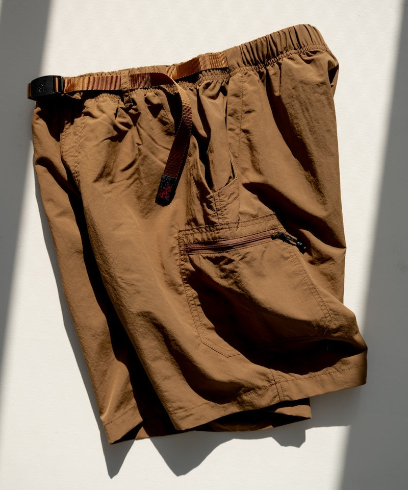 The Nylon Utility Short is a go-anywhere short designed for hiking, swimming, or to be worn as functional, stylish streetwear. These shorts feature seven pockets that will help you keep your gear handy and organized. The back pocket has a vertical cut, and the front and back pocket openings have a unique look when viewed from the side. The lightweight nylon delivers superb breathability and easy movement, with a gusseted crotch enabling 180-degree leg movement. These hiking shorts are water-repellent and dry quickly, making them ideal for an impromptu swim or for weathering a storm.