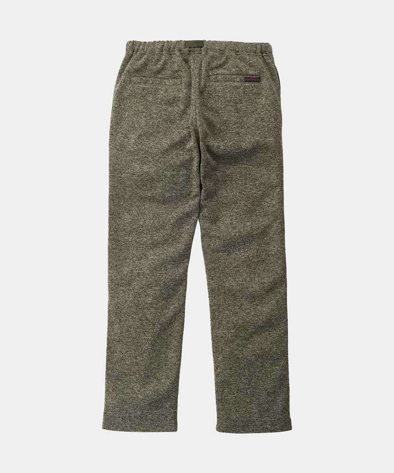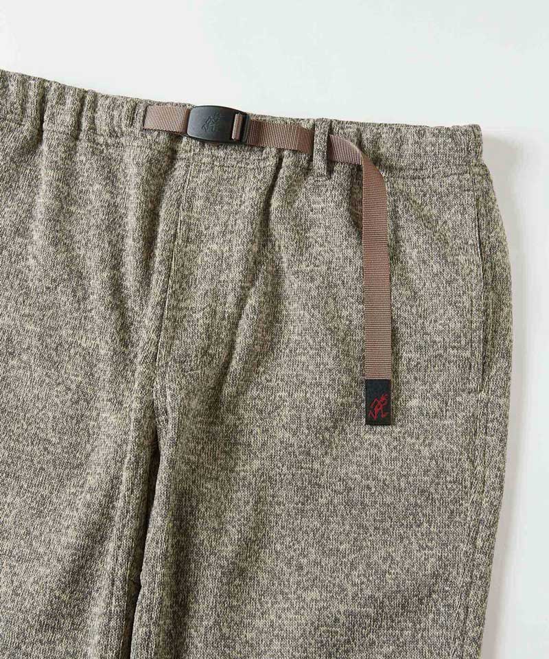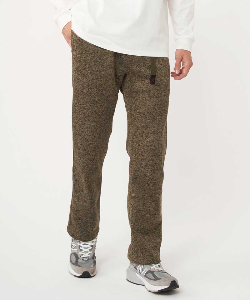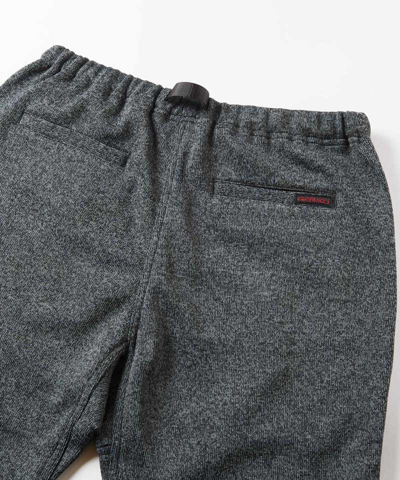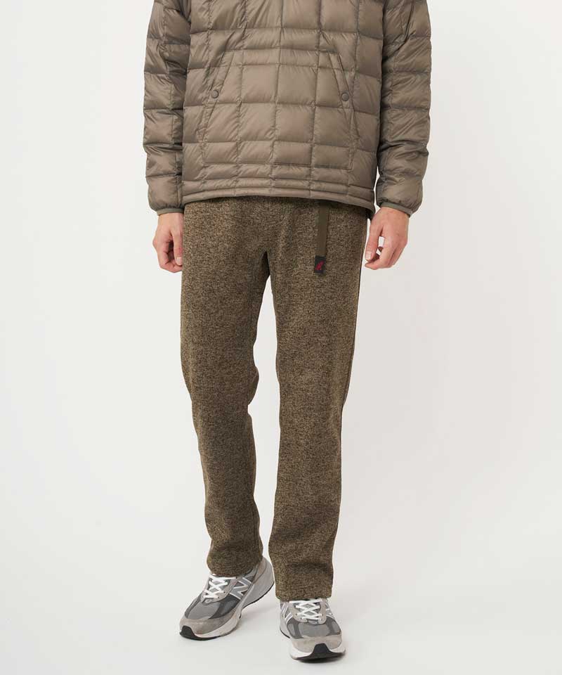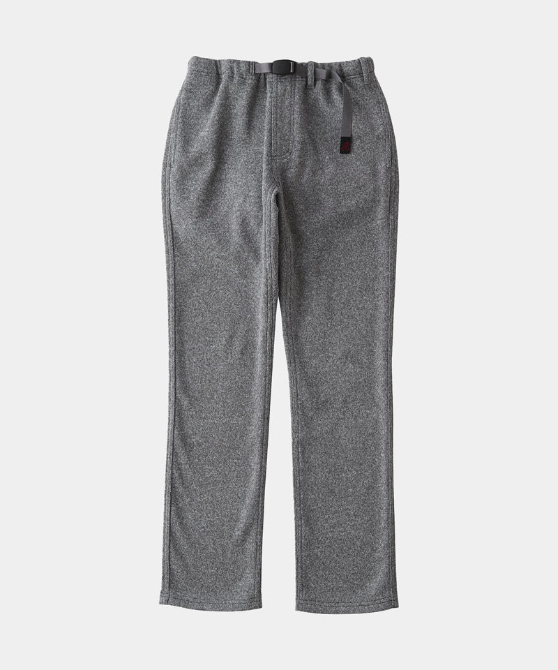 The classic Gramicci Bonding Knit Fleece NN Pant features a slim silhouette that is tailored to modern lifestyles while retaining functionality in the brand's climbing scene roots. These outdoor lifestyle pants have a tapered silhouette that narrows toward the hem, but they are made from stretch material, so they can also be used as activewear. Compared to NN-Pant, these NN-Pant Cropped Pants are 4 cm shorter and are designed to show the ankles without rolling up the hems. Made with Gramicci's fall and winter signature material, the knit fleece's surface looks knitted. The pants are stretchy and can be worn without stress. Microfleece is affixed to the inside to maximize heat retention and keep the wind out.