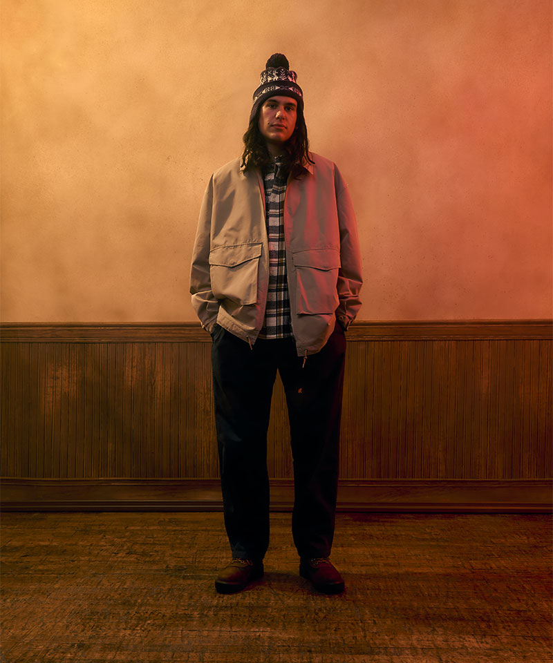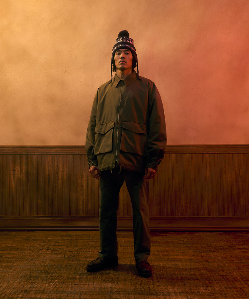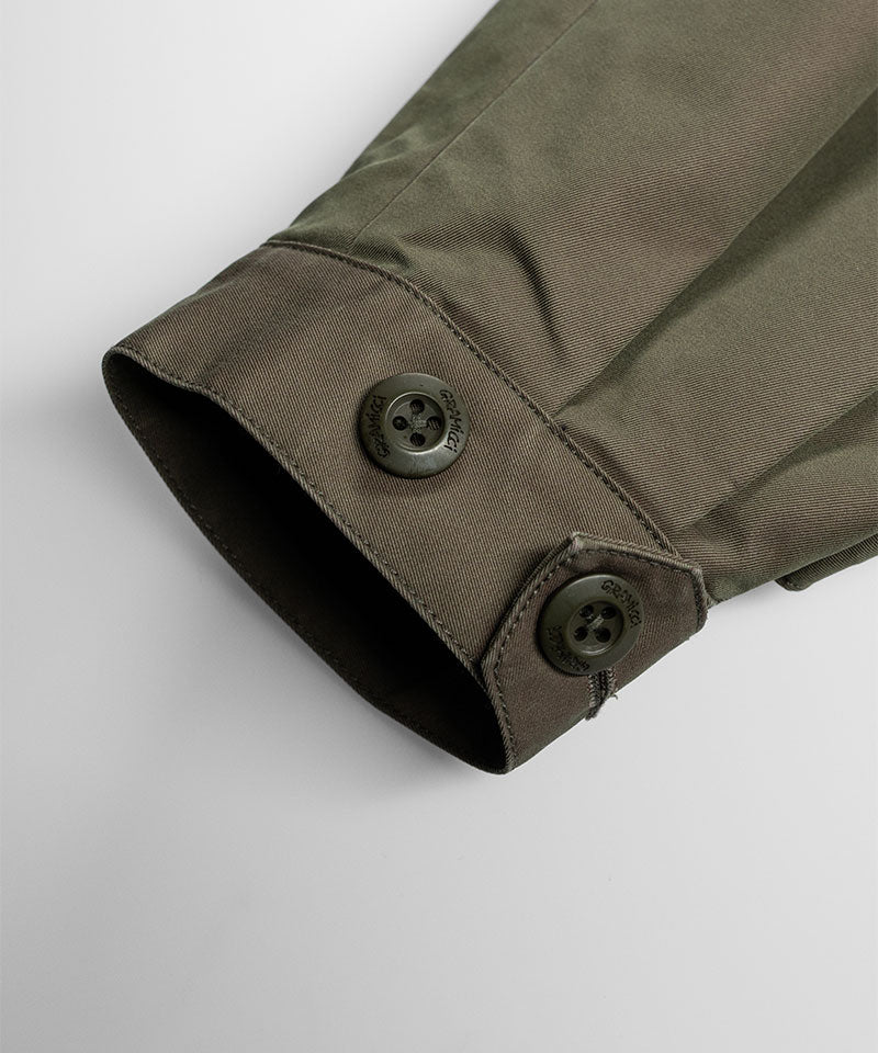 Inspired by British military outdoor garments, the Ventone Jacket offers an oversized fit with slightly dropped shoulders, making it the ideal piece for casual, comfortable outerwear. It features large utility pockets with expandable cargo areas, plus hidden side-entry hand-warmer pockets, combining style and functionality. The exterior is crafted from a Japanese-milled, long-staple cotton fabric that, thanks to its compact weave, offers water repellency similar to the renowned Ventile fabric. The olive colorway has a "sharkskin" finish, giving it a subtly iridescent sheen. Also available in a versatile Beige.