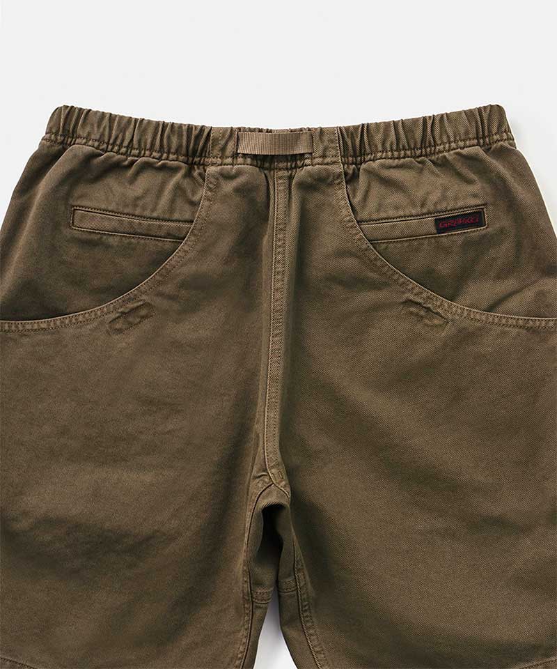 Introducing the Pigment Dye Ground Short--a part of our exclusive collection. Made with durable, tough 11 oz. canvas, these shorts are designed for rugged outdoor adventures. The pigment dye used for these shorts gives them a vintage-like coloring, stylish enough to wear in town as urban fashion. The back has a double design with large round-cut pockets and regular vertical pockets. Gramicci's classic design features, the gusseted crotch and the built-in belt, are included in the Pigment Dye Ground Short.