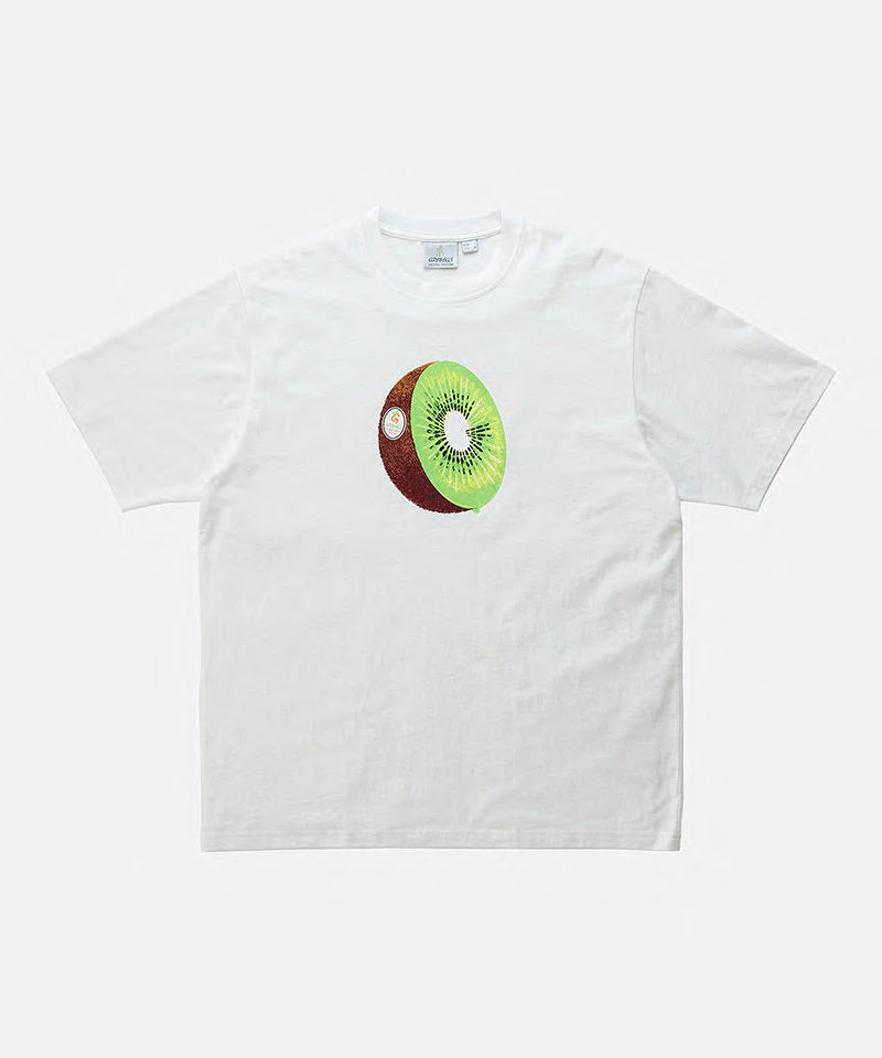 The Gramicci Kiwi Tee adds a fresh twist to your everyday basics. This mid-weight jersey tee features our quirky kiwi fruit graphic that brings a bit of fun to your wardrobe. Crafted from eco-conscious cotton, it has the perfect weight for solo wear on warm days or layering when the temperature drops. The simple design lets the fruit do the talking, while the versatile fit works for both active days and casual wear. It is a little slice of playfulness that works any season of the year.