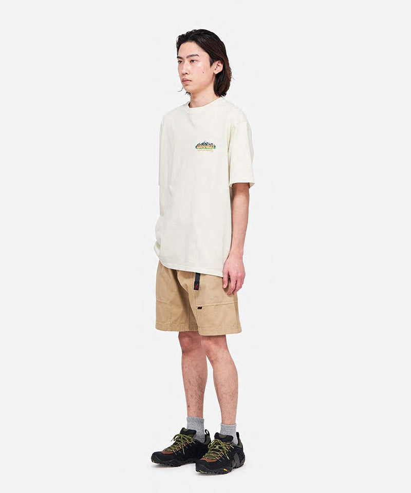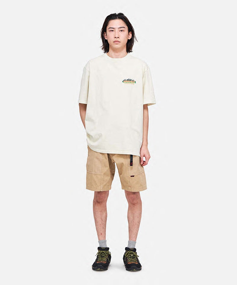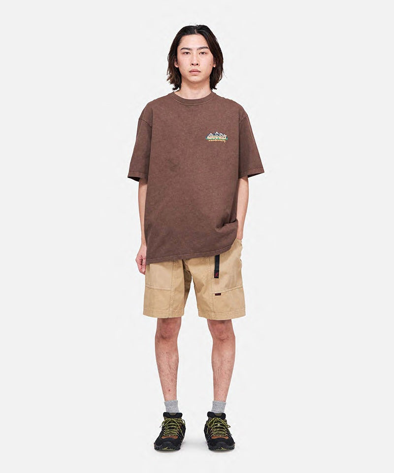The Gramicci Mountaineering Tee captures the spirit of high-altitude adventure in a comfortable everyday package. This mid-weight jersey tee features our mountain range artwork that will remind you of your next summit bid, even when you are stuck in the city. The pigment-dyed fabric gives each tee a unique character, while the eco-conscious cotton keeps things comfortable no matter the season. Whether you are planning your next climb or just dreaming about it, this tee brings a piece of the mountains to your daily routine.
