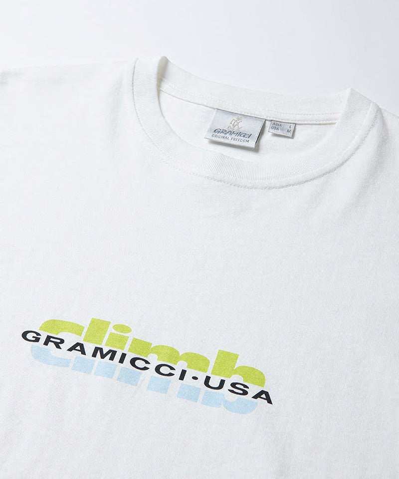 The Gramicci Climb Tee keeps things simple with a message that says it all. This mid-weight jersey tee features our colorful 'climb' logo that captures the essence of what we do. Crafted from eco-conscious cotton, it has that perfect weight that works for both active days and casual wear. The gradient-colored text adds a subtle pop to the clean design, making it an easy choice for any day of the week. Whether you are heading to the climbing gym or just out and about, this tee lets everyone know what you are about.