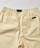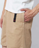 Mike “Gramicci “ Graham gave the first G-Shorts to his climbing friends in “prepared for dye” white. They would then dye them at home with RIT and head for the nearest crag to serve as test models. The shorts had a diamond-shaped gusset in the crotch for freedom of movement and a hidden elastic waistband that expanded and contracted. Graham eliminated a zip fly because it was anything but comfortable against a rock face. He swapped it for a one-piece, one-hand adjustable plastic belt buckle that could be locked by pulling on the belt and released by tilting the buckle. After the thumbs up from his friends, Gramicci started manufacturing the shorts and dyeing them in a small factory in Oxnard, California. He sold the finished pairs out of his van with the help of a small group of reps. Today, the shorts, which are still made, are known as the original G Short.