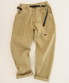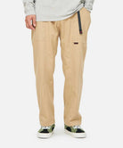 These pants are able to hold gadgets to suit modern lifestyles, while maintaining the functionality during climbing that serves as the brand's roots. Highlighted by large pockets extending from the front to the back, the silhouette has a comfortable looseness. Tough canvas is used for these pockets, while the contrast between the two types of materials through garment dyeing is another notable feature. Also, the webbing belt with the brand logo on the right side is useful outdoors and in the city, as it can hold keys and bottles. They are made of 100% organic cotton twill with high durability, tension, and stiffness that can even withstand strenuous movement and dyed to give character to their appearance.