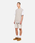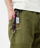 These shorts are able to hold gadgets to suit modern lifestyles, while maintaining the functionality during climbing that serves as the brand's roots. Highlighted by large pockets extending from the front to the back, the silhouette combines a comfortable looseness with a smart appearance. Tough canvas is used for these pockets, while the contrast between the two types of materials through garment dyeing is another notable feature. Also, the D-ring with the brand logo on the right side is useful in the outdoors and in the city, as it can hold keys and bottles. They are made of 100% organic cotton twill with high durability, tension, and stiffness that can even withstand strenuous movement and dyed to give character to their appearance.