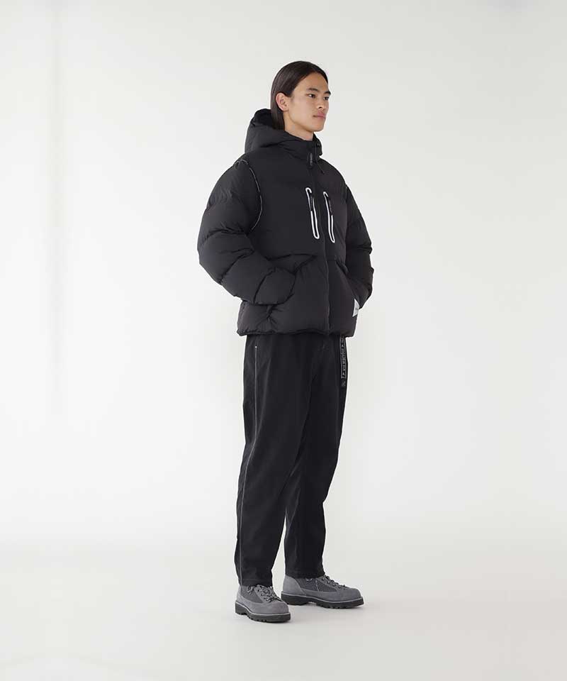 We've collaborated yet again to bring you the ultimate winter fashion for the coming season. This down jacket has a water-repellent finish to keep you warm and dry during winter conditions, whether grabbing coffee in the city or hitting the mountains for an outdoor adventure. We've built in a crimped reflector zipper pocket on both sides of the chest for safe storage of important items—useful and sentimental alike. For higher visibility at night, this sleek winter coat has partial reflector stitching. The Gramicci x and wander Down Jacket can easily become your next winter season essential.