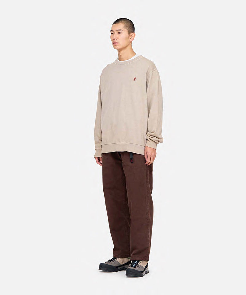 The One Point Crew Sweatshirt takes classic comfort and adds that unmistakable Gramicci soul. Crafted from fleeceback jersey cotton, it hits that perfect sweet spot between cozy and capable, not too heavy, not too light, just right for every mission. Our iconic Running Man logo sits quietly on the chest, a subtle nod to the adventures ahead, while ribbed cuffs and hem keep everything locked down when you are on the move. This sweatshirt proves that sometimes the simplest pieces become the most essential.