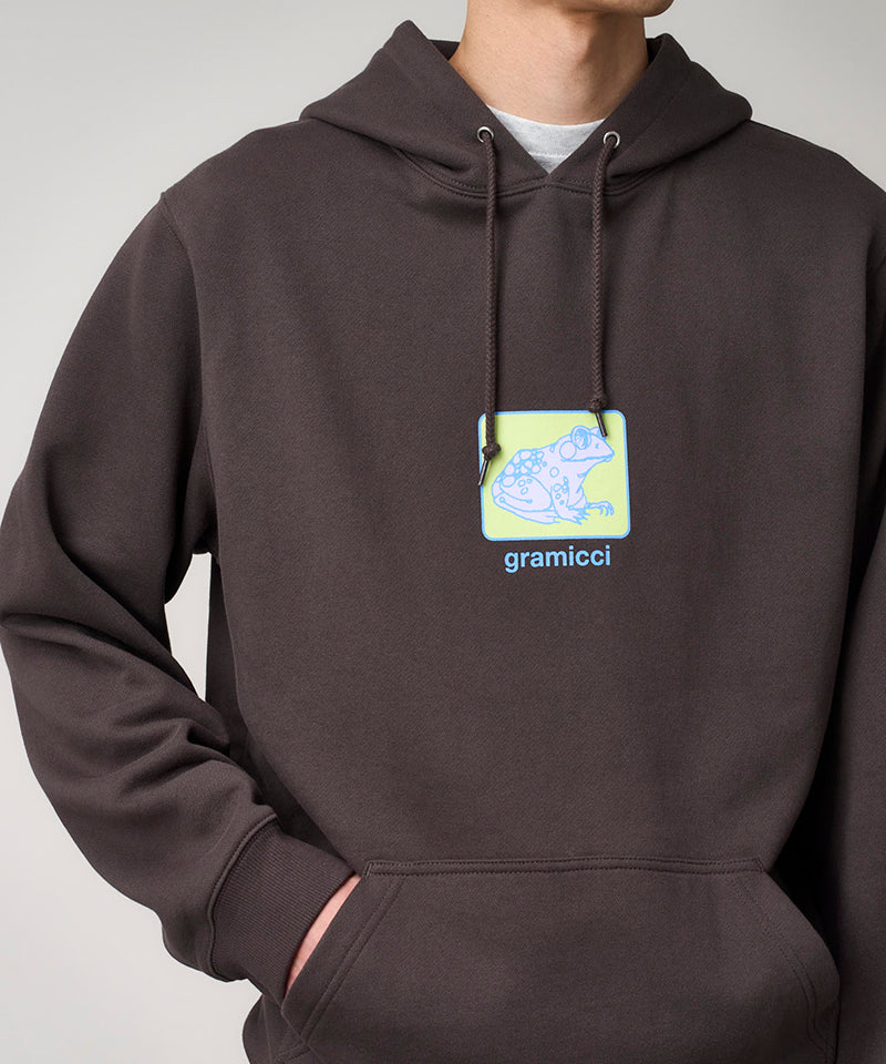 The Gramicci Toad Hooded Sweatshirt is for those who appreciate nature's most underrated philosopher, the humble toad. This fleeceback cotton hoodie celebrates the amphibian that's basically the outdoor community's spirit animal: patient, adaptable, and surprisingly good at finding the best spots to hang out. While everyone else is chasing flashy lizards or majestic eagles, you're here representing the creature that knows how to sit still, wait for the right moment, and then absolutely nail it when conditions are perfect. The chest graphic features our warty friend in all their bumpy glory, because sometimes the best conversations start with "Is that a toad on your hoodie?" The handwarmer pockets are perfect for keeping your hands cozy while you practice your own toad-like patience at the belay station.